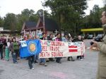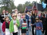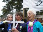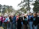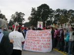 The culmination of the weekend for us was the funeral procession on Sunday. Ā Again there were wonderful speeches and songs followed by a ceremony calling out the names of the people who have died because of the SOA. Ā Led by Father Bourgeois and mourners bearing mock coffins, we processed and carried wooden crosses bearing the names, ages and countries of people who died, and, after each name was read, we all raised our crosses and sang, “Presente” Ā (“Here/Present”).