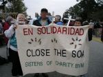 I was deeply impressed by the number of Catholic priests, brothers, sisters and students at the vigil. Ā They came from Catholic high schools and colleges all over the US. Ā That’s not really surprising, though, since many religious have been murdered in Latin America, e.g., “On November 16, 1989, six Jesuit priests, their co-worker and her teenage daughter were massacred in El Salvador. A U.S. Congressional Task Force reported that those responsible were trained at the U.S. Army School of the Americas (SOA) at Ft. Benning, Georgia.”