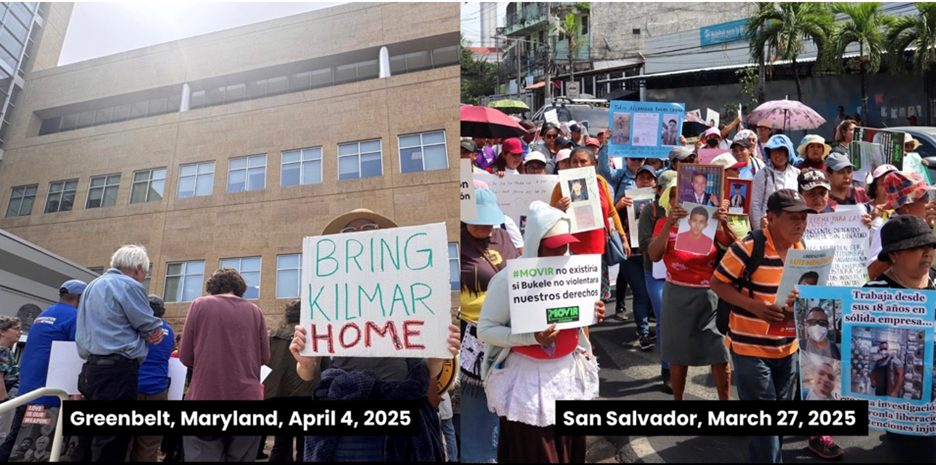 Hundreds of people came to today’s hearing in Greenbelt, Maryland. Two courtrooms were full of supporters for Kilmar and his family, and a couple of hundred remained outside. And in El Salvador, thousands of people—the families of innocent victims of Bukele’s unconstitutional war on gangs—have also been mobilizing to demand their freedom, often under the threat of arbitrary arrests for them as well. As today’s chanting crowd in Maryland said, “If we fight, we win!” We will need this unity and resistance to make sure that Kilmar Abrego García comes home, to stop mass deportations, and to end mass incarceration in the US and El Salvador.
